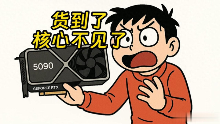 这一开,他彻底傻眼了——显卡的显存芯片不见了,GPU 核心也不见了,只剩下一块空板子。他的全新 5090,核心和显存全被拆走。