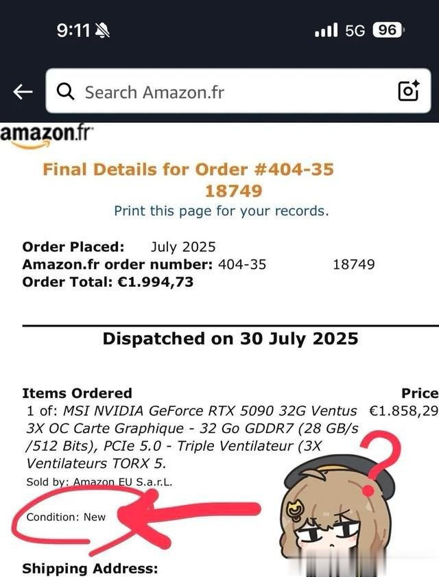 今天要分享一位来自法国的倒霉小哥的故事。为什么说他倒霉呢?因为他在法国亚马逊自营购买了一张全新的微星 5090 显卡,做足了各种检查,还是遇上了大翻车。